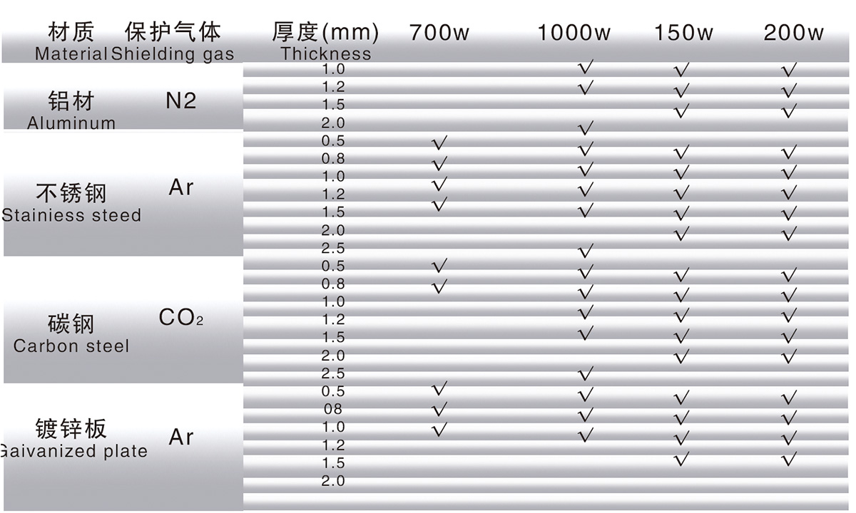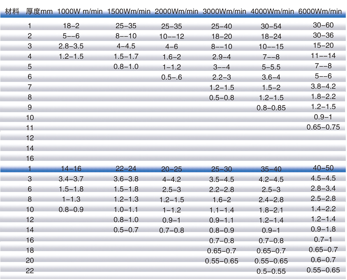 光纖激光器材料焊接熔深對照